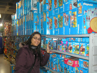 Depois de conseguirmos descontos surpresas no Carrefour, visitamos umas lojas infantis. Sim, parecíamos duas crianças. Fiquei feliz quando vi a coleção do Playmobil (remete minha infância na Vila, em Brasília, quando eu adorava brincadeiras de meninos. Sem maldade, ok?). Encontrei também os bonecos Smurfs (aqui se chamam Los Pitufos), uma graça. Mas também tinha lançamentos, como a Moranguinho nova geração (Tarta de Fresa). Flash back total!