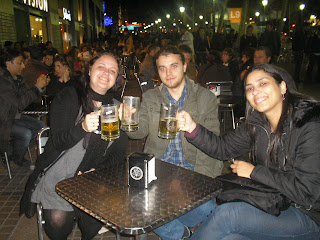 Estamos no meio de um feriado prolongado, Puente de Imaculada. Daí vocês sabem, cervejinha desde cedo. Com a carioca Thaís (aniversariante do dia) e o romeno Alex, fui ao restaurante brasileiro El Rodizio (1). Nossa, me "empanturrei" de churrasco e feijoada, que não estava lá essas coisas, mas já me fez feliz. Afinal, estava sem comer feijão desde que cheguei! Também tomei Guaraná Antártica, pra matar a saudade. De lá, tomamos mais umas no bar El teu lloc (2), na Carrer de Valencia. Depois fomos para o Zurich (3), um dos botecos mais turísticos de Barcelona, na Plaza Catalunya. Como estava lotado ali. E a programação do feriado continua...
