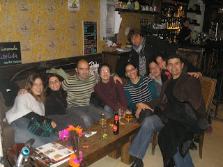 Xara, minha amiguinha grega, decidiu fazer um jantar no apartamento que ela divide com outras três colegas (Carrer Villadomat). A ideia era que cada um levasse um prato típico de seu país. Fiquei na dúvida quanto ao que poderia cozinhar aqui. Como encontrei feijão no mercado, coisa rara aqui, resolvi fazer um caldo. Foi a primeira vez que eu fiz, e não é que ficou gostoso? Mamãe e tia Dora, que são especialistas em caldo, ficariam orgulhosas de mim (risos). Recebi vários elogios dos outros gringos: "Qué rico!", diziam. Agora estou me achando...