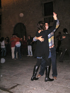 Sexta-feira, sob a luz da lua, a Plaça del Rei foi palco de um espetáculo popular de danças tradicionais. Fiquei surpresa e encantada com a sutileza das danças de roda, que reúnem gente de todas as idades no mesmo compasso. Lembrou-me um pouco das nossas quadrilhas de São João, num ritmo mais lento, mas não menos divertido. Até quem não conhece a tradição, se atreve a ensaiar uns passos e entra na roda. Adorei conhecer um pouco da cultura medieval catalã.