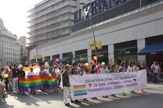 E Barcelona também tem sua Parada Gay. Tímida, mas tem. Bom, tímida em termos numéricos, pois havia pouca gente ontem na Carrer de Pelai - isso se comparada às famosas Paradas Gay do Brasil. Por outro lado, claro que os "peladões" também estavam ali para dar seu recado. Achei um pouco sem graça, mas até que o pessoal fez um barulhinho, que foi o que atraiu minha curiosidade até ali. Bom, parece que ontem foi só o primeiro dia, a programação continua...